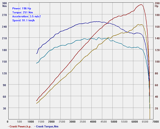 Весьма характерный для компрессорного мотора результат – ровный рост мощности и момента практически во всем диапазоне оборотов. Отличный результат и в количественном выражении – 30 л/с и 40 ньютонометров прироста крутящего момента.