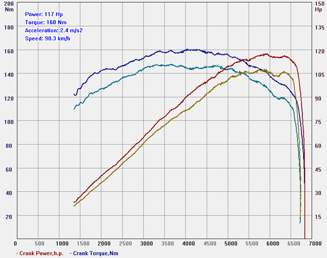 Этот автомобиль, является отличным примером того, насколько хорошо поддается чип-тюнингу, какзалось бы, обычный атмосферный мотор начального уровня. Ровный прирост мощности практически во всем диапазоне оборотов, заметно преобразил характер машины – улучшилась динамика с полной нагрузкой, нет провалов при ускорении на высших передачах с малых оборотов, уменьшилось время отклика на педаль газа.