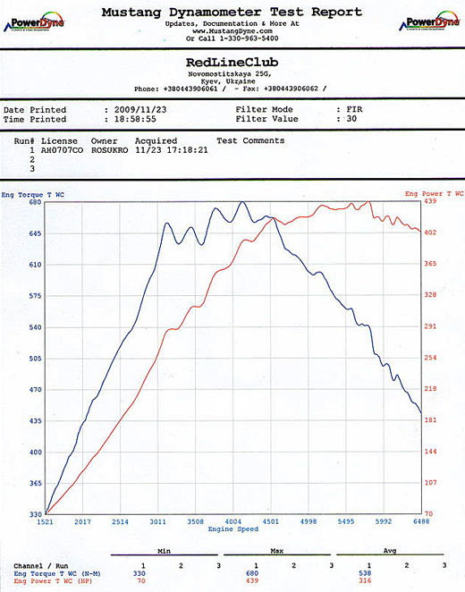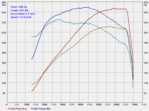Результативная мощность после всех вышеописанных доработок составила немногим более 600л.с. (BHP).